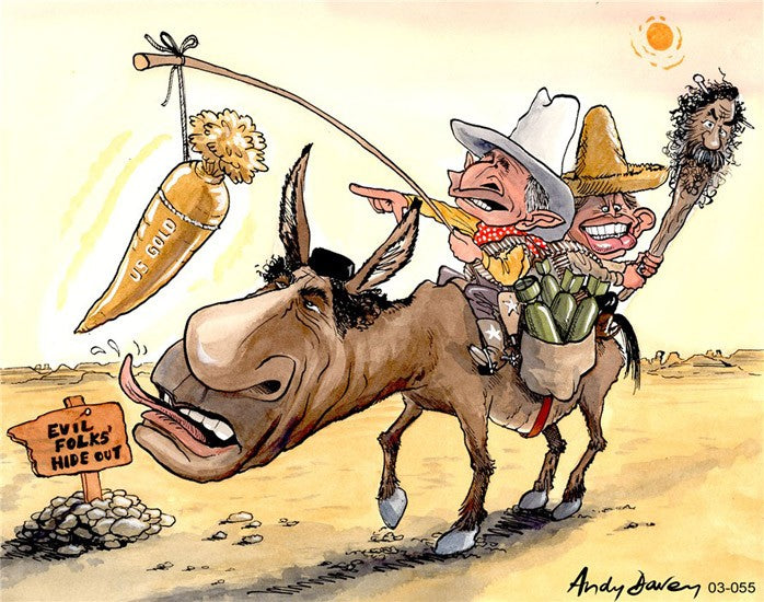 It emerges that Gadaffi has been in secret negotiaions with the 'Lovers of Freedom' for two years. He has been promised a lifting of sanctions and the "carrot" of US investment if he agrees to cancel his WMD programmes and provides information on terrorists. In the background lurks a "stick"; the threat of ending up like the sorry figure of Saddam.